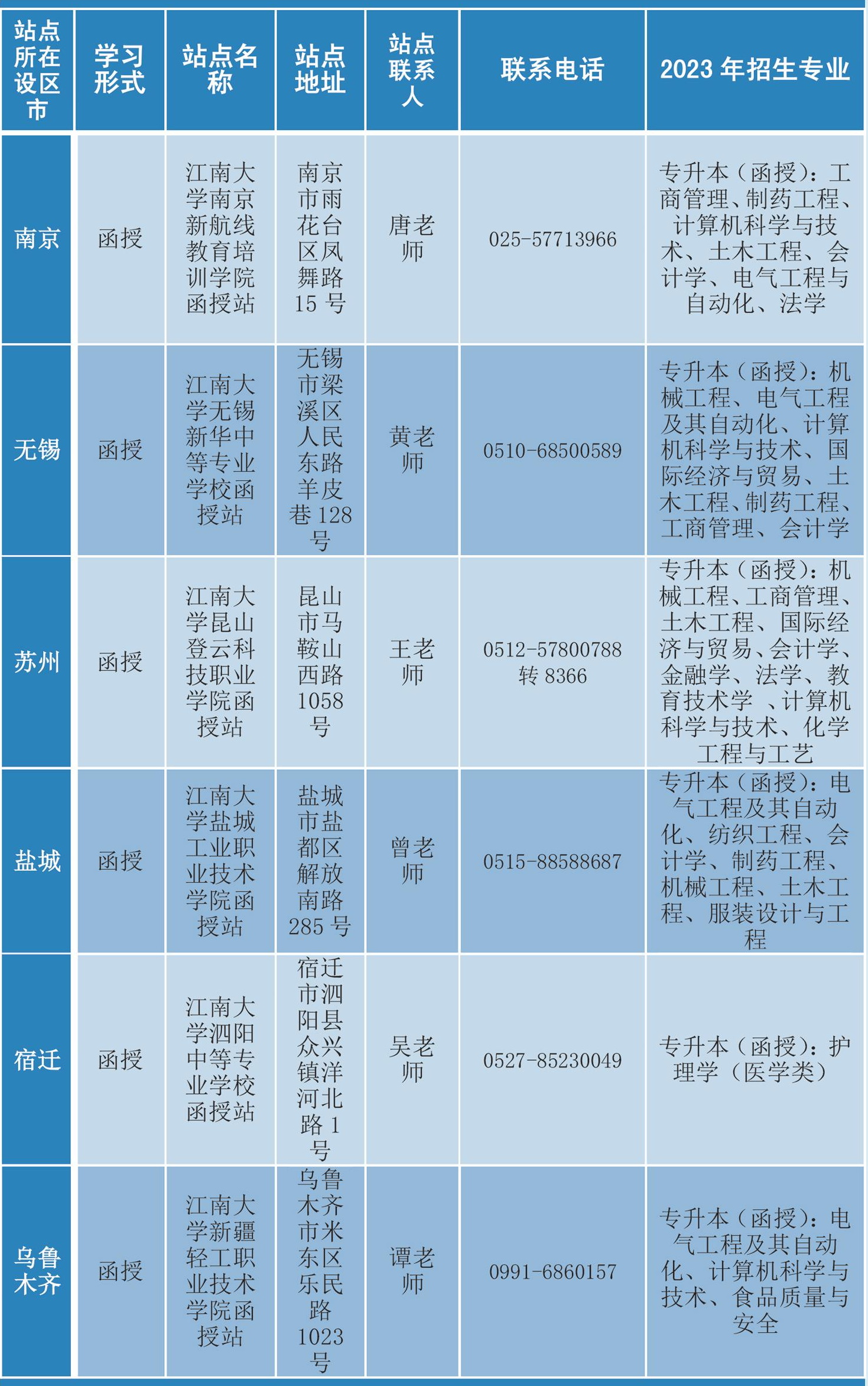 (校外教学点招生专业以江苏省、新疆维吾尔自治区教育考试院官方最终公布为准。凡未在上表中列出的任何社会办学机构均与公司无合作,