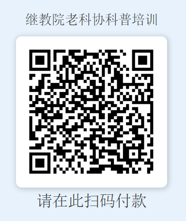 学员通过微信扫描下面的二维码进行网上报名、缴费,必须填选“支付金额、姓名(需实名)、备注(注明所报课程)、开票类型(选个人)、手机号、邮箱、票据抬头”。