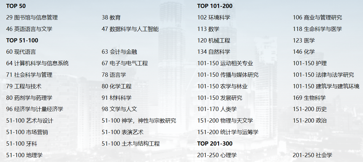 马来亚大学在2025年QS世界大学学科排名中成为马来西亚所有大学的领导者。