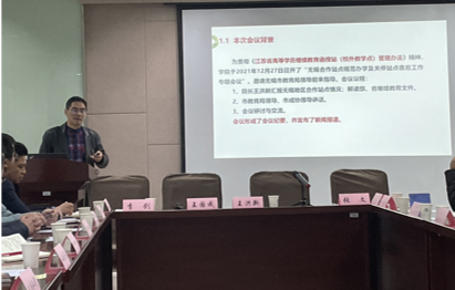 | 为学习贯彻落实《省教育厅关于印发< 江苏省高等学历继续教育函授站(校外教学点)管理办法>的通知》(苏教规〔2021〕1号)的文件精神,进一步规范无锡地区合作办学,推动继续教育的高质量发展。1月10日下午,继网公司在大学科技园二号楼3楼会议室召开了2021年度无锡地区合作站点进一步规范办学工作会议。无锡地区合作站点负责人、继网公司院领导及相关部门主任参加会议。 首先,王洪新经理对各位站点负责人的到来表示热烈欢迎,感谢各合作站点多年来对公司工作的大力支持和对无锡地区职工继续教育做出的很大贡献。并简要说明了本次会议的主题和主要议程。 接着,王洪新经理结合继续教育政策形势分析和部、省继续教育文件的解读,对本次会议召开的背景及无锡地区合作站点清理整顿的过程、具体设置情况(含无锡直属站情况和站点管理规定)进行了汇报;对公司在促进站点合作方面所做的努力及结果进行了详细的说明,并陈述了公司在坚持高度政治站位的原则下对站点设置相关工作的意见,明确传达了公司决定自2022年起,对无锡地区未经省教育厅备案的合作办学点全部停止招生;结合具体案例分析,列摆了在无锡地区未备案合作站点停招后可能存在的难点和风险隐患。并希望各站点予以理解和支持,做好后续相关工作,确保办学安全。 此后大家进行了研讨交流。非备案合作站点负责人对停止合作的做法予以理解,并表示将一如既往地接受公司的指导和管理,积极配合公司认真贯彻执行教育部、江苏省和公司的决定,做好关停过程中员工的教学、服务等善后工作。大家都认为在后续工作中应加强联系,及时沟通,确保员工学业的顺利完成,不发生舆情事件。                                                                                                                                                    图1:王洪新经理做汇报                                                            图2:研讨交流 |