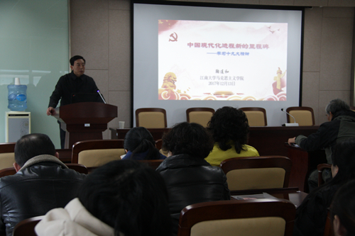 12月13日下午,继续教育与网络教育公司学习贯彻党的十九大精神宣讲报告会暨党员大会在南区三楼会议室召开。会议由王洪新经理主持。会上校宣讲团成员鞠连和教授以《中国现代化进程新的里程碑——学习十九大精神》为题,为公司全体老师做宣讲;公司党总支王国成书记给全体党员上党课。
