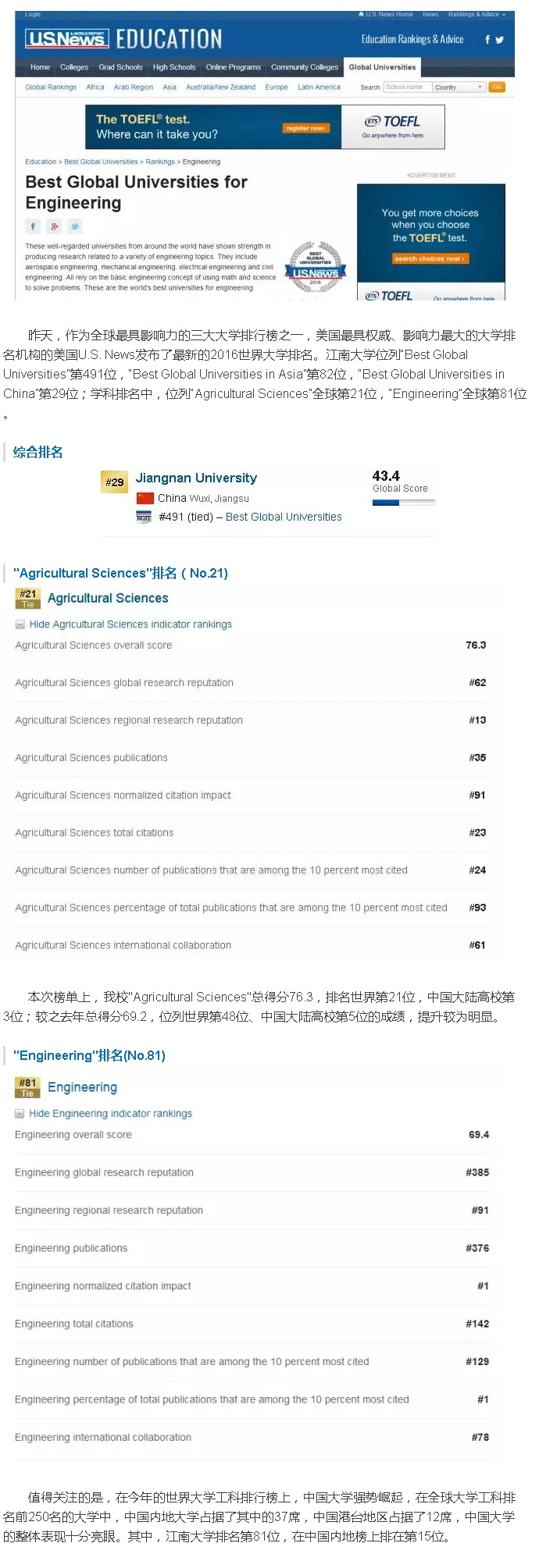 【微江南】U.S.News世界大学排行榜发布 PA视讯集团官网农学全球排名21位、工学81位 ... ... ...