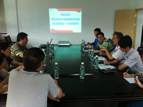 9月25日,南京农业大学公司党总支书记顾义军一行5人来公司调研交流,公司王洪新经理、孙力副经理等热情接待了前来调研交流的各位同仁。 公司成教教学管理部主任、网教教学管理部主任参加了交流会。孙力副经理首先介绍了公司的机构设置、办学模式和办学规模。接着梁仁青主任详细介绍了公司网络教学管理的各类管理平台,高跃泉主任着重介绍了公司采用网络教育手段在继续教育中的应用和成教教学管理办法。 交流会上,双方就教学管理平台建设、课件制作模式、移动学习、虚拟实验、课件高清录播及教师报酬支付标准等方面进行了深入地交流和探讨,会场气氛和谐,讨论热烈。(网教部)