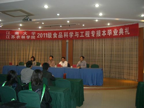 5月10日下午,由继网公司王洪新经理亲率食品公司的单良、乐 琳 二位博士等四人来到位于江苏省句容市的江苏省农林职业技术公司生物工程系进行茶叶种植、茶叶深加工、食品安全等课题进行研讨,大家围绕如何利用教学、科研载体等进行广泛的深度合作。 11号上午,王经理一行参加了江苏省农林职业技术公司组织的85位2011级食品科学与工程专接本自学考试员工的毕业论文答辩,并对员工论文进行指导及讲解。下午四时,出席2011级员工的毕业典礼,作了重要讲话,并与全体师生毕业留念。 (成教部)