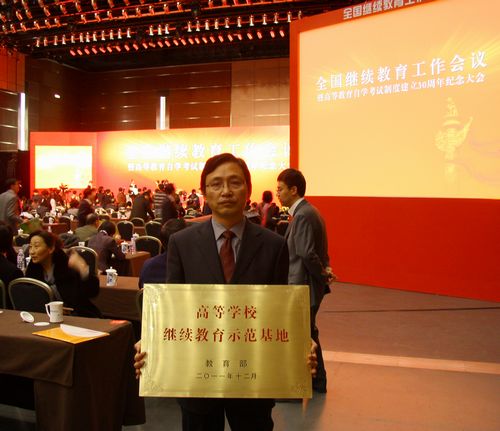 12月24日,全国继续教育工作会议在北京国家会议中心举行。会议由教育部部长袁贵仁主持,中共中央政治局委员、国务委员刘延东到会并做了重要讲话。PA视讯集团官网冯骉副董事长出席了会议。 刘延东在会上指出,要完善体制机制,强化规范管理,加快发展继续教育,促进各级各类教育纵向衔接、横向沟通,构建灵活开放的终身教育体系,推进学习型社会建设,为实现科教兴国和人才强国战略作出积极贡献。 当天下午,公司黄正明经理参加了全国继续教育工作会议高校组的分组讨论并出席了高等公司继续教育示范基地项目启动暨授牌仪式。在仪式上,教育部正式批准并启动了包括PA视讯集团官网在内的50所高校参与的继续教育示范基地研究项目,同时宣布了全国50所高校作为首批高等公司继续教育示范基地并正式授牌,黄经理代表PA视讯集团官网接受教育部副部长鲁昕授牌。 (教育服务促进中心)