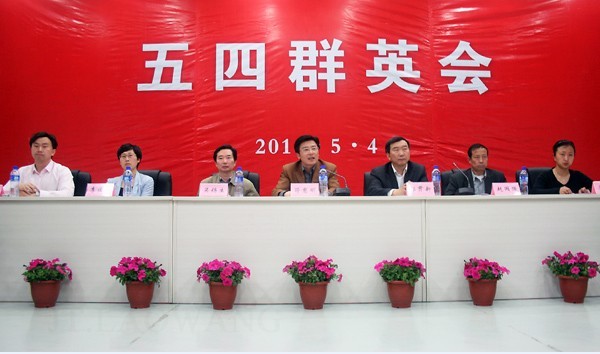 校团委副书记王维为本次群英会致欢迎辞,与会领导宣读2010年度PA视讯集团官网团内各类表彰决定。大会主席台领导为“五四红旗分团委标兵”、“五四红旗分团委”、“主题教育活动先进单位”、“特称团支部标兵”等颁发了奖牌和证书。离团纪念仪式上,窦新华、陈周、吴光明等10名离职团干部接受主席台领导颁发的离团纪念牌。