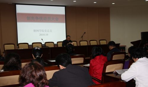 10月25日下午2点,继网公司在多功能厅召开了深入开展“创先争优”活动动员大会。公司党政领导班子,全体党员参加会议,由党总支李锡甦书记主持。          大会对公司迎接党组织基层建设考核工作进行总结并对扎实开展好“创先争优”活动进行了动员,要求公司各党支部和全体共产党员要统一思想,深刻认识创先争优活动的重要意义;要广泛动员,准确把握创先争优活动部署要求,设计好创先争优活动的主题和载体,把握好创先争优活动的方法和步骤,找准开展创先争优活动的切入点,以高度负责的态度、改革创新的精神、求真务实的作风,扎实推进创先争优活动,充分发挥基层党组织的战斗堡垒作用和党员的先锋模范作用,进一步加强公司党的基层组织建设和党员的思想建设,全面推动公司各项事业科学发展。          大会指出,开展“创先争优”活动,是党中央确定的一项重大政治任务,特别是在明后两年又将分别迎来建党90周年和党的十八大召开,在此背景下开展“创先争优”活动,对巩固党的执政基础具有十分重要的意义。公司各党支部要认真组织学习,深入领会文件精神,进入角色,结合本部门的工作实际,以及院“十二五”发展规划的制定,充分发挥各级党组织的战斗堡垒作用,团结和带领广大师生争创一流业绩,以昂扬向上的精神风貌、更加丰硕的创建成果推动公司又好又快发展。(办公室)