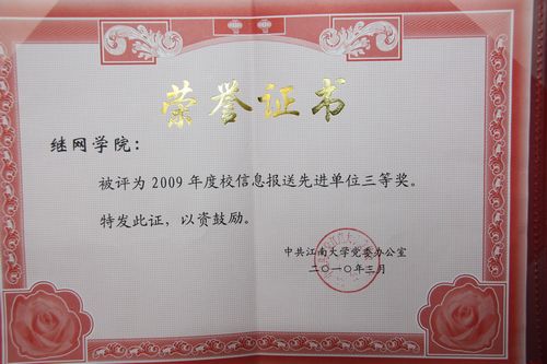 在3月26日召开的“2010宣传思想工作与信息工作会”上,表彰了一批2009年度信息工作先进单位和个人,公司获校信息报送先进单位三等奖,这是继2008年以后再一次获得此荣誉。同时,公司党总支秘书顾慧娟老师获得年度《PA视讯集团官网报》教工通讯员与年度校信息报送工作先进个人。在此,公司党政对关心和支持公司信息工作的各部门及教职员工表示最衷心的感谢!同时,希望全体教职员工在新的一年中,为进一步加快公司的全面发展,提升公司办学的知名度和影响力,多方位展示公司风采和推动公司的创新发展,继续努力,把公司的信息工作做得更好。(办公室)