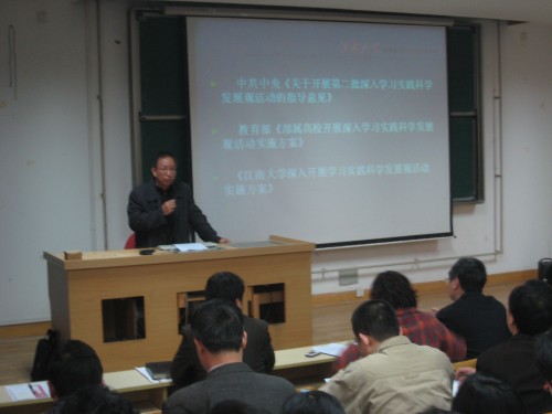 3月21日上午,公司在逸夫馆102会议室召开深入学习实践科学发展观活动动员大会。会议由黄正明经理主持,公司全体教职工党员与员工党员都参加了此次会议。 院深入学习实践科学发展观活动领导小组组长、公司党总支书记李锡甦作动员讲话。他从开展深入学习实践科学发展观活动的重要意义、目标要求、指导思想、基本原则、研究问题及实施步骤等方面进行了全面部署。 李书记说,开展深入学习实践科学发展观活动,是党的十七大作出的一项重大战略部署,是进一步用中国特色社会主义理论体系武装党员干部、教育广大师生的重大举措,同时也是公司破解难题、提高质量,推动高等教育事业又好又快发展的迫切需要。 会上强调,开展深入学习实践科学发展观活动要全面贯彻党的十七大精神,高举中国特色社会主义伟大旗帜,以邓小平理论和“三个代表”重要思想为指导,围绕“固本强基促发展、改革创新共攀登”创新发展理念,破解发展难题,谋划公司发展、深化内部改革、提升管理质量、加强服务意识、提高队伍素质、推进党的建设,为推动公司科学发展而努力。学习期间将秉承坚持解放思想,着力更新观念;坚持联系实际,突出实践特色;坚持群众路线,充分发扬民主;坚持正面教育,把握正确导向的基本原则,以院级领导班子、党员领导干部为重点,全体党员参加,将学习过程分为:学习调研阶段、分析检查阶段和整改落实阶段,从3月开始到7月结束。同时,公司成立深入学习实践科学发展观活动领导小组和工作机构,权责分明,分类指导,统筹兼顾,探索创新。 最后,黄经理作了总结,指出这次学习实践活动为我们提供了一个解决发展难题、积极回报社会、实现科学发展的良好契机。公司要抓住这次学习实践活动的机遇,深入研究,广泛听取意见,把压力变为动力,为公司各项工作又好又快发展而努力!(办公室)