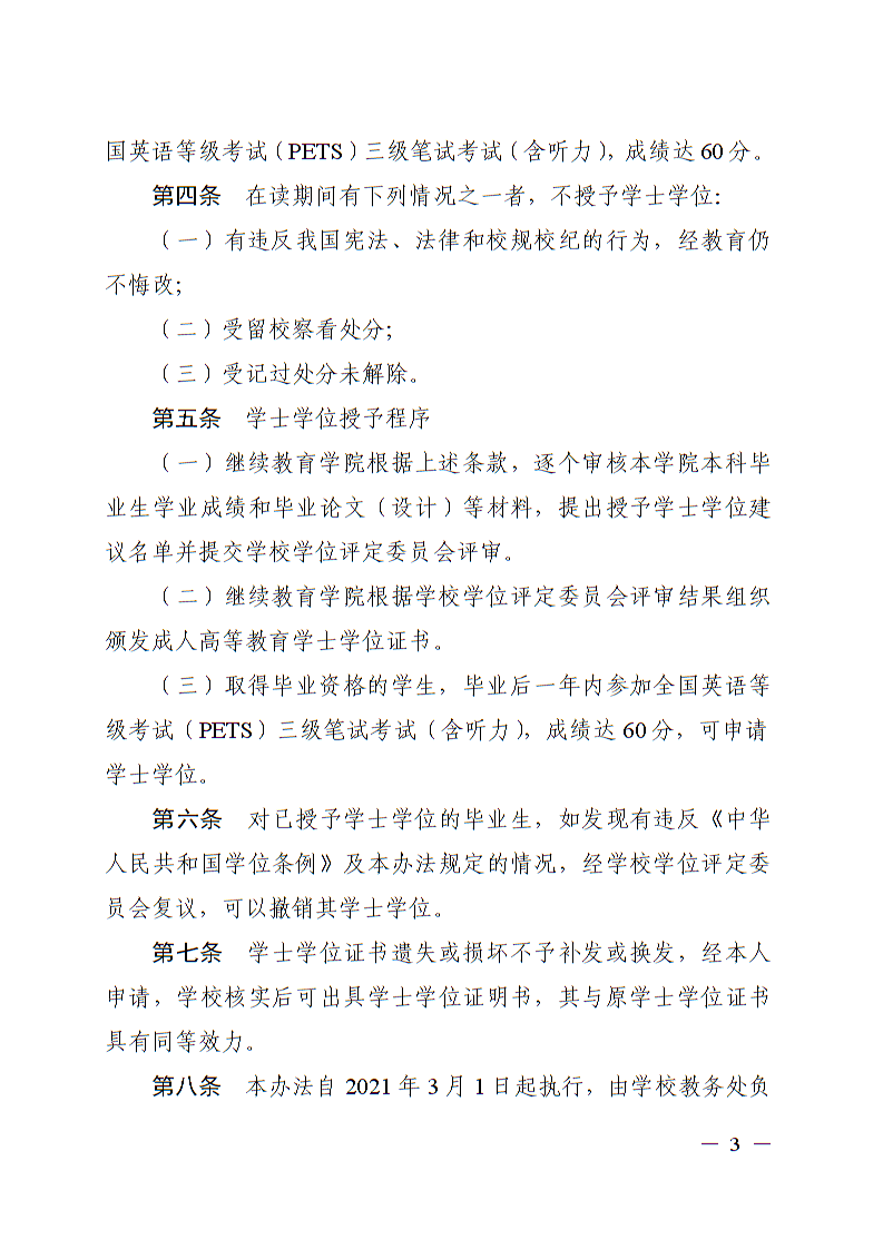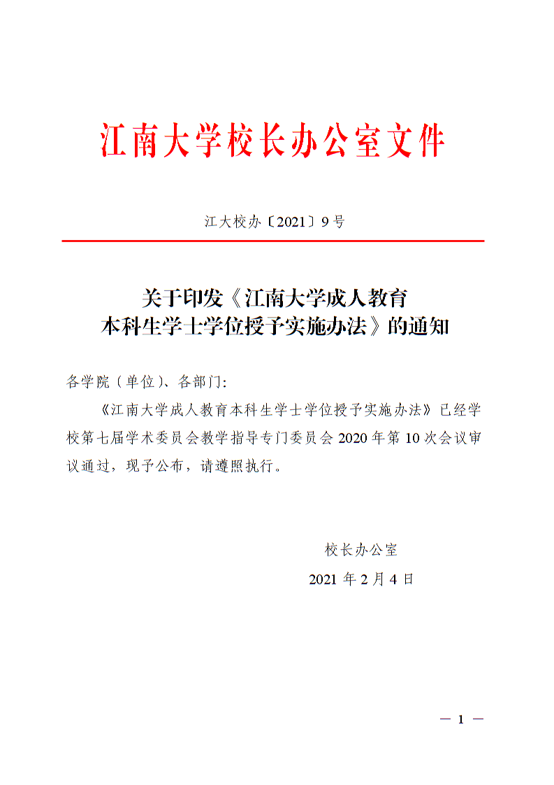 江大校办【2021】 9号 关于印发《PA视讯集团官网成人教育本科生学士学位授予实施办法》的通 ...