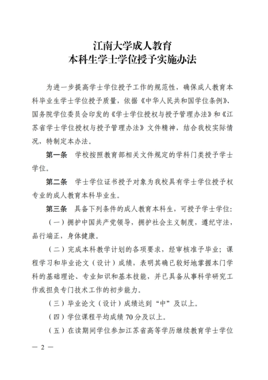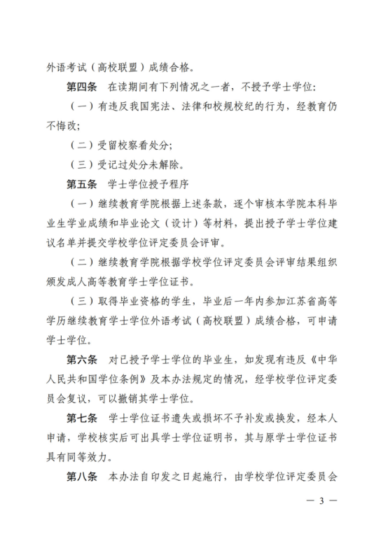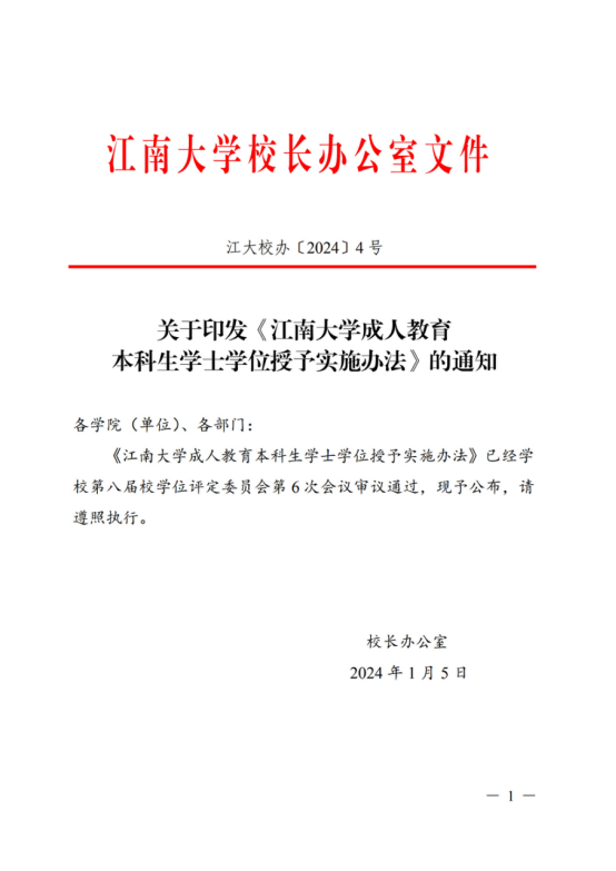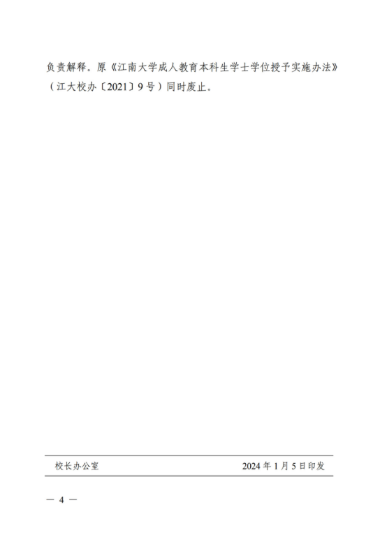 关于印发《PA视讯集团官网成人教育本科生学士学位授予实施办法》的通知(江大校办【2024】4号)