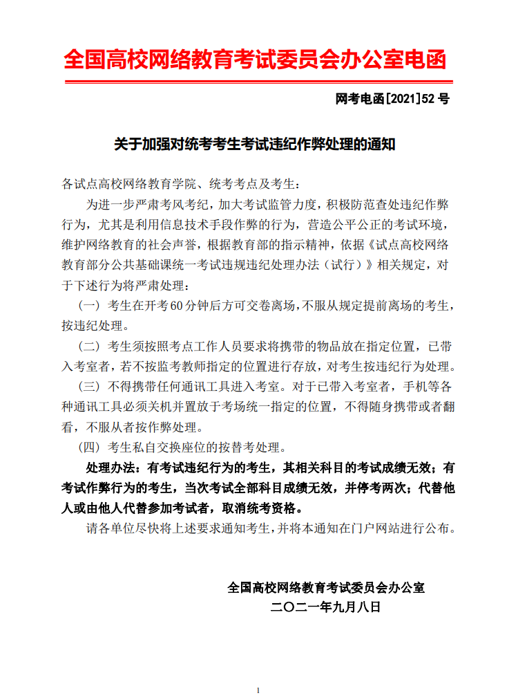 转发“网考电函[2021]52号 关于加强对统考考生考试违纪作弊处理的通知” ... ...
