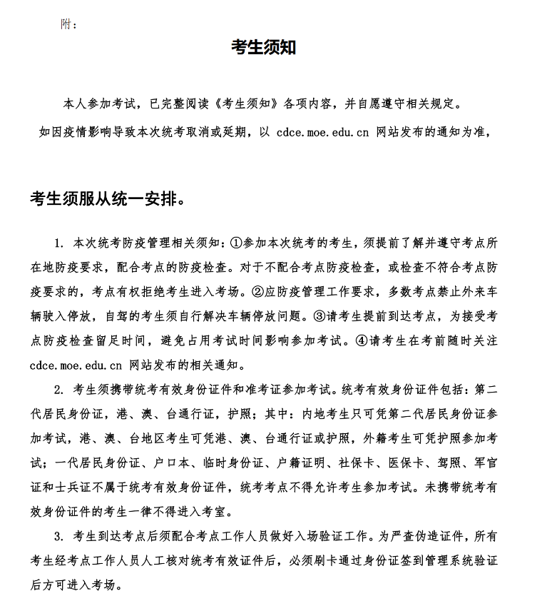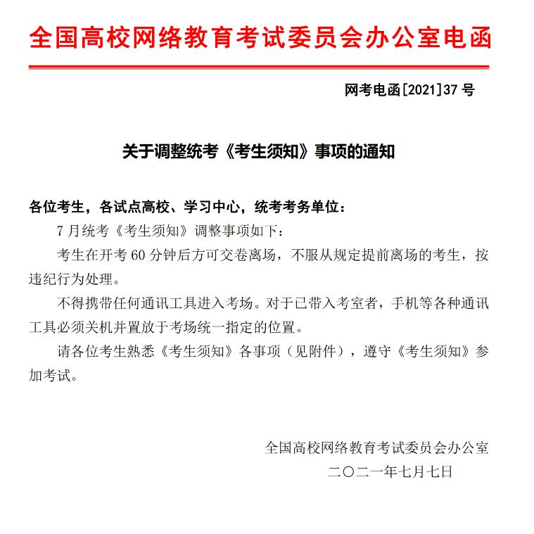 转发“网考电函[2021]37号 关于调整考生须知事项的通知”