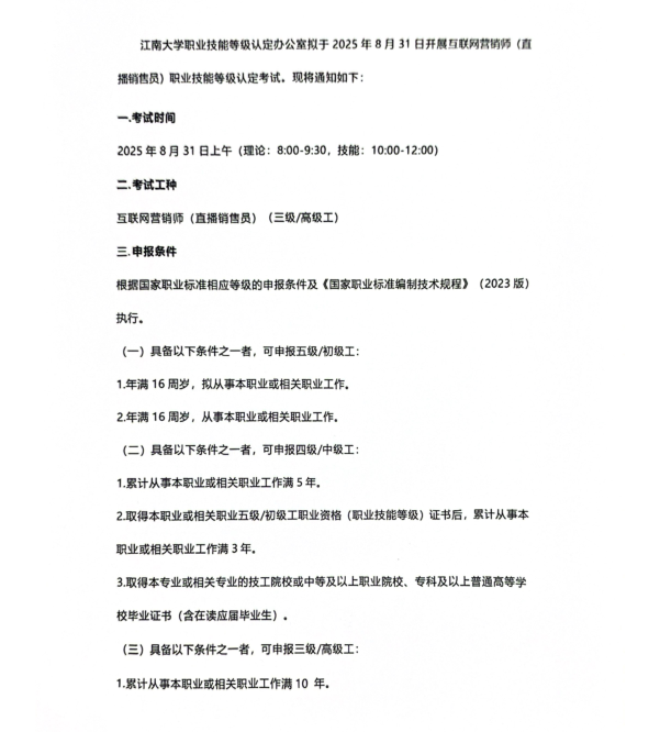 关于开展2025年8月31日职业技能等级认定考试的通知
