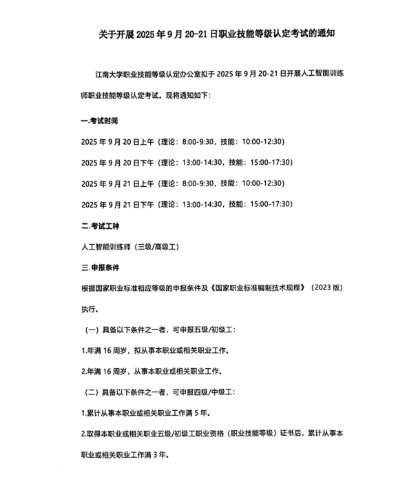 关于开展2025年9月20-21日职业技能等级认定考试的通知